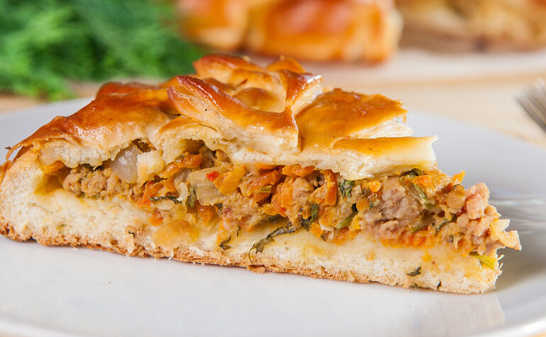 Закрытый пирог с нежным печеночным паштетом, морковью и луком (1300 г)