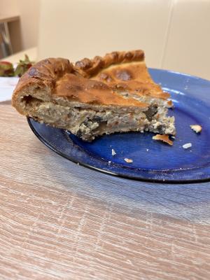 Наша компания очень тщательно работает над изготовлением каждого пирога. Процесс состоит из нескольких этапов: изготовление теста, и один из основных процессов в том числе это изготовление начинки. Мы не используем полуфабрикаты, наша начинка всегда изготавливается с нуля и проходит все стадии: где необходимо термообработки, доведения до вкуса. Стандарты нашей компании строго запрещают использование в начинке например сырой курицы или фарша без обжарки.