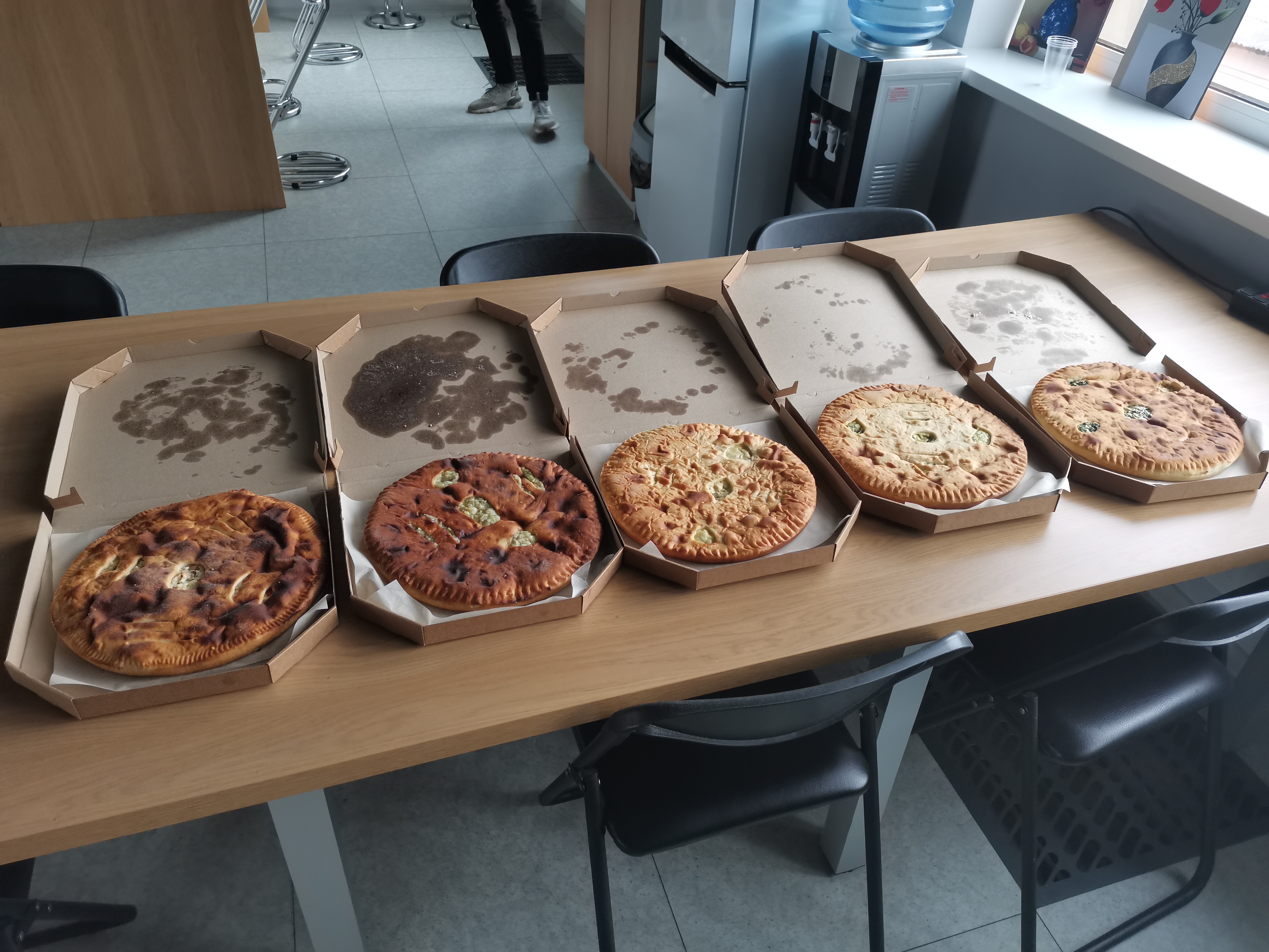 Заказывали сет из 4 пирогов: творожный с воздушным зефиром, лимонный, с курицей и сыром, сёмгой и рисом. Пироги на первый взгляд выглядят так себе, как лепешка, но внешний вид обманчив - у нас было много начинки и все было вкусно, сытно. Нас было 15 человек и все из нас не прочь вкусно покушать)) но даже у нас осталось по паре кусочков каждого пирога, потому что очень сытные пироги. Лично мне показалось, что лимонный пирог, конечно, на любителя, но ребята на работе расхваливали. А запах какой, аромат... Думаю, просто надо найти свой вкус, а их очень много. Курьер приехал вовремя, пироги были горячие, как будто вот-вот из печки. Удачи ребятам в их нелёгком труде! Ждём новые вкусы и приятные скидки