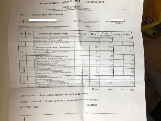 Прилагаю акт выполненных работ, где черным по белому написано скидка 0 руб. Никому не советую данную стоматологию: поберегите деньги и нервы.