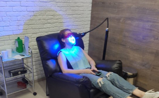 Наше оборудование - это новейшие LED-лампы (2022 года) холодного синего и красного свечение (красный свет благоприятно влияет на чувствительность ваших зубов)