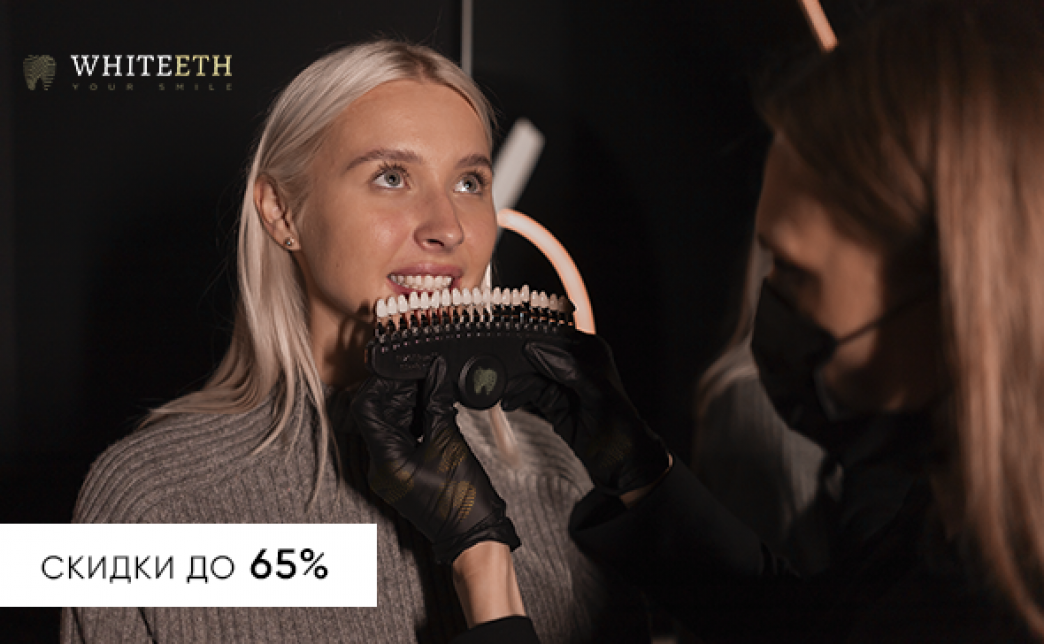 - Промокод дает право на скидку до 65% на косметическое отбеливание зубов в студии "Whiteeth 2.0"
