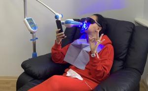 В течении 15 минут гель освещается мощной светодиодной лампой холодного свечения. Гель выделяет активный кислород и обесцвечивает глубокие загрязнения. Для максимального эффекта процедура повторяется до трех раз подряд.