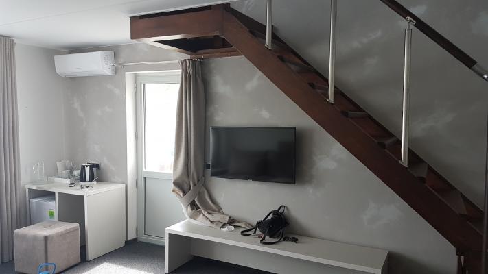 Были в 301, с электрическим камином. Спальня на втором этаже, но ночевали на первом из-за мошек в спальне и, соответственно, на телах. МУРАВЬИ))) Они на первом этаже -  от входа в номер до стола у них тропа))). Некоторые дошли до дивана . Вся покусана.