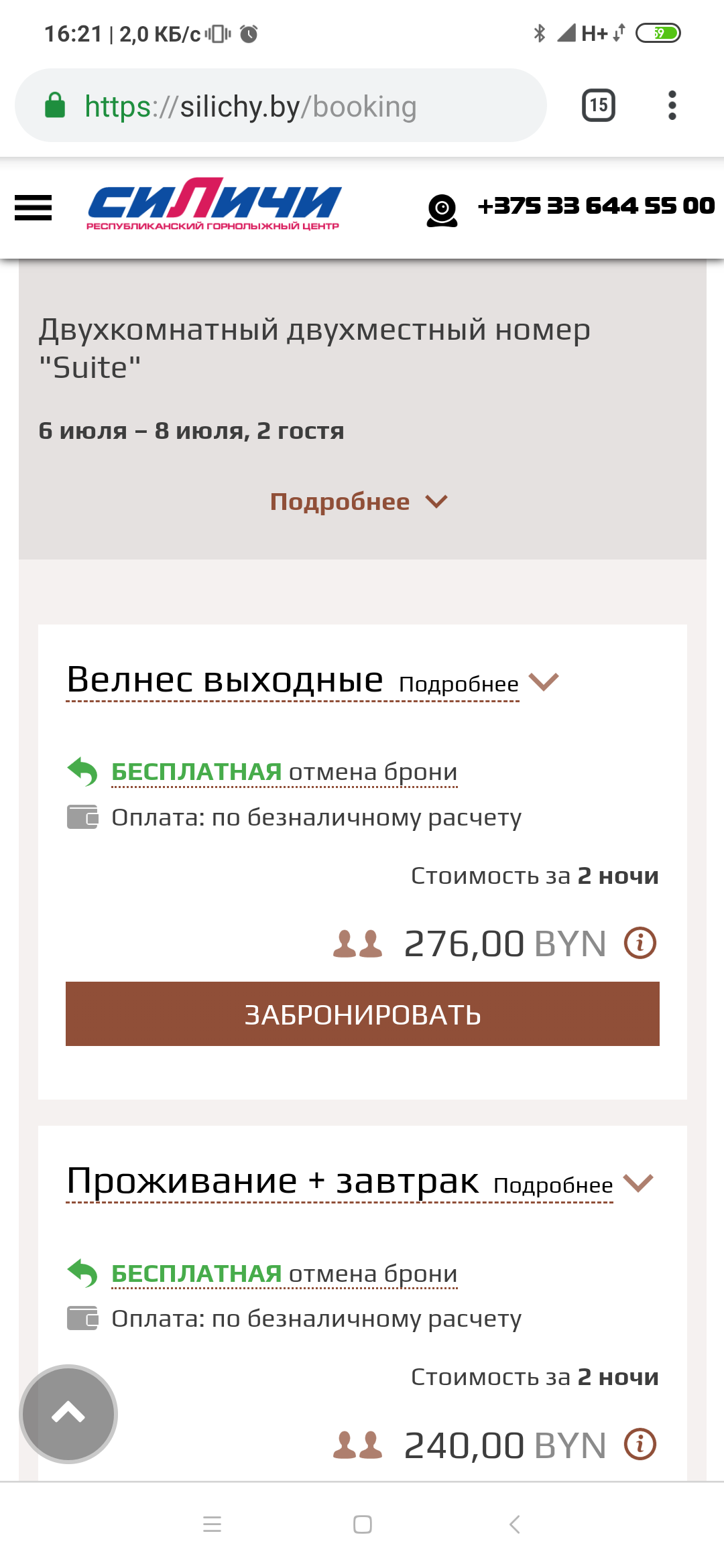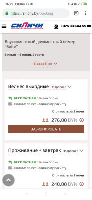 - Бронь осуществляется через сайт, по телефону и через почту booking@silichy.by