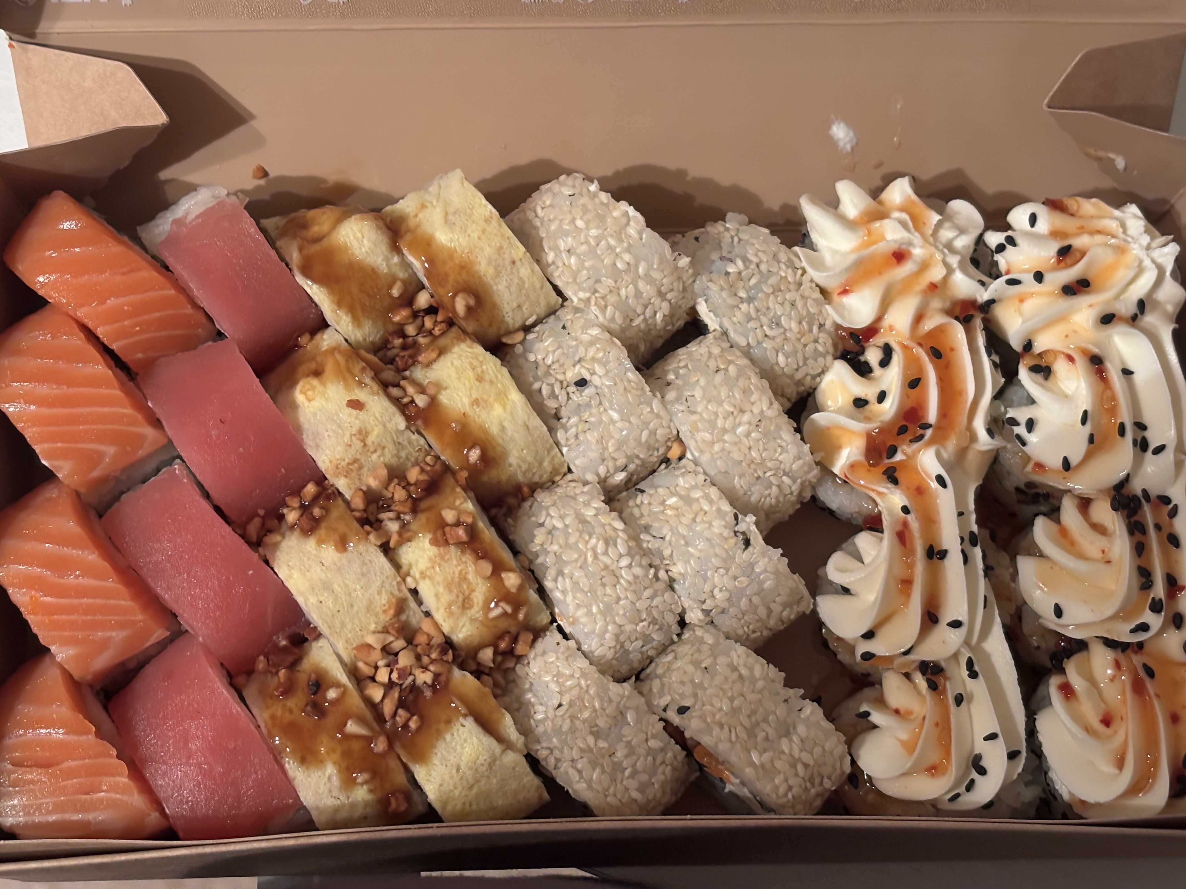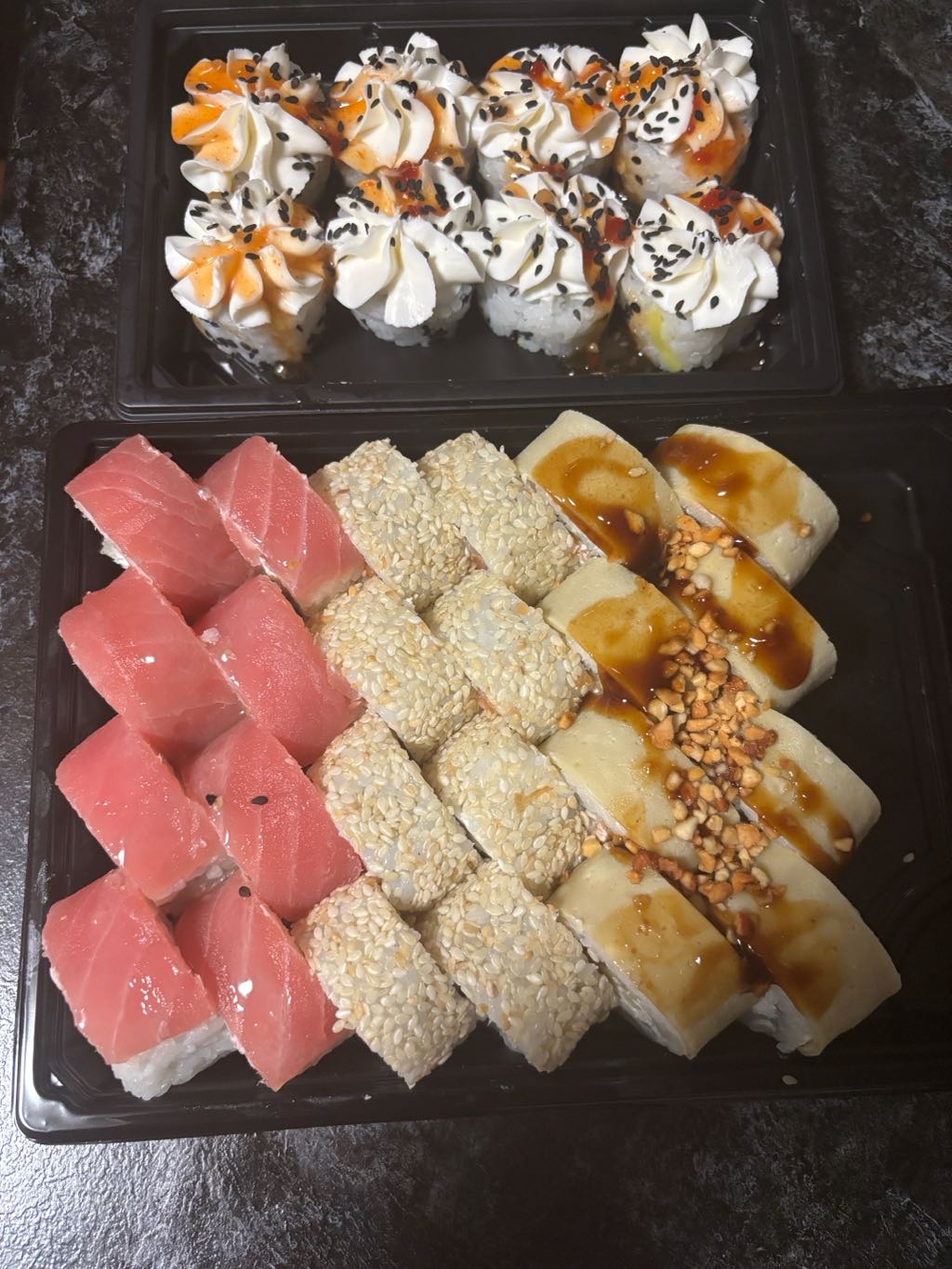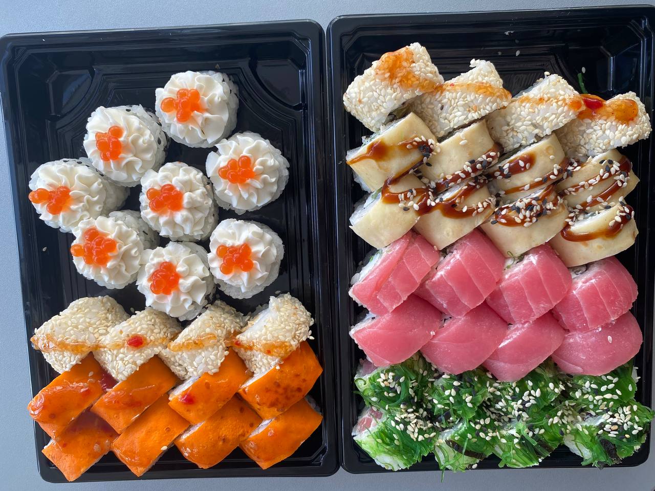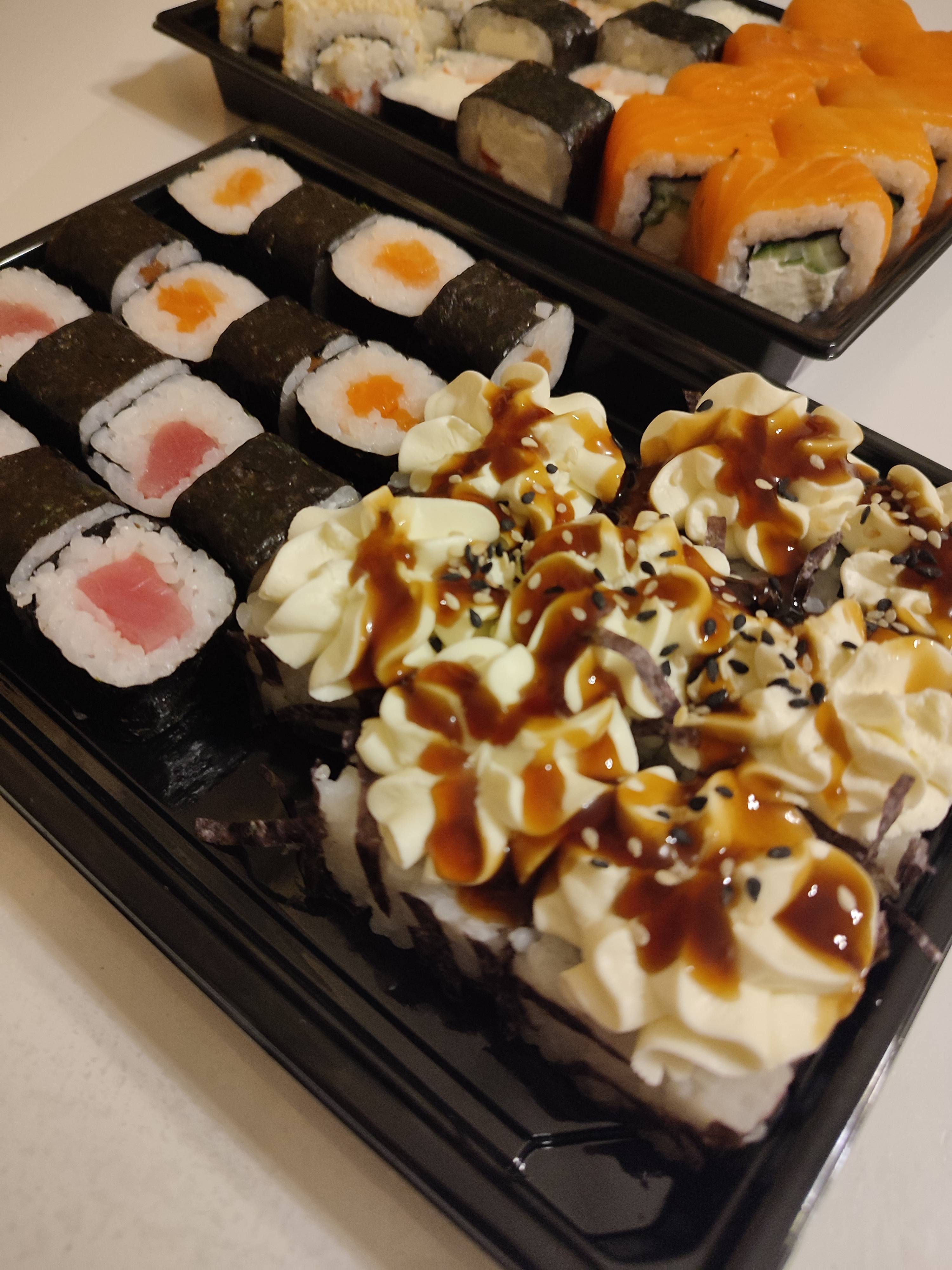 Отличная доставка! Заказ был доставлен быстро и в идеальном состоянии. Суши свежие, вкусные и красиво оформленные. Особенно поразил ассортимент и качество рыбы. Приятно удивлен сервисом .Обязательно буду заказывать снова