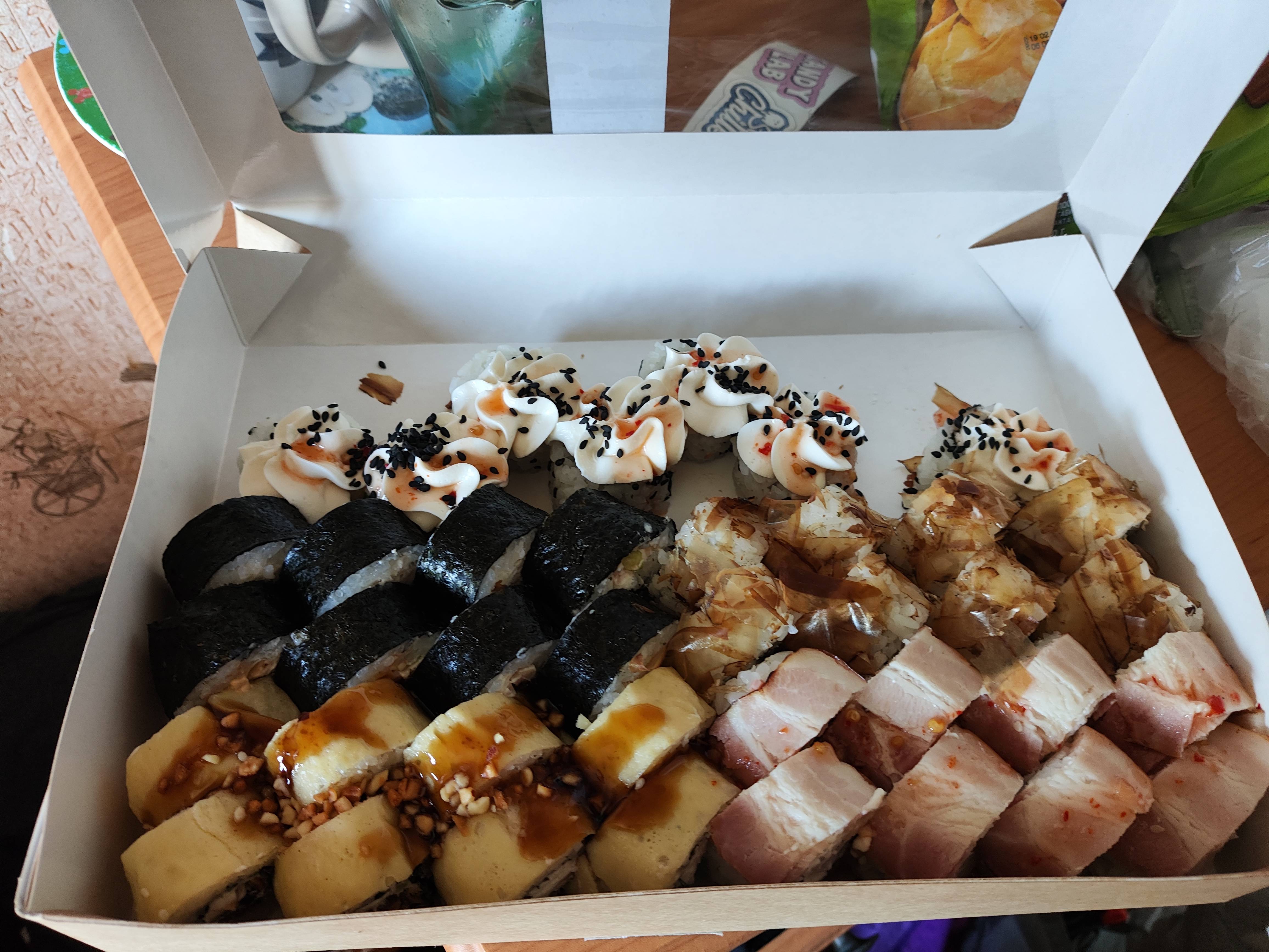 Суши пришли свежими и быстро! Очень довольна, обязательно закажу снова