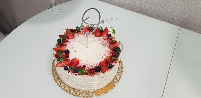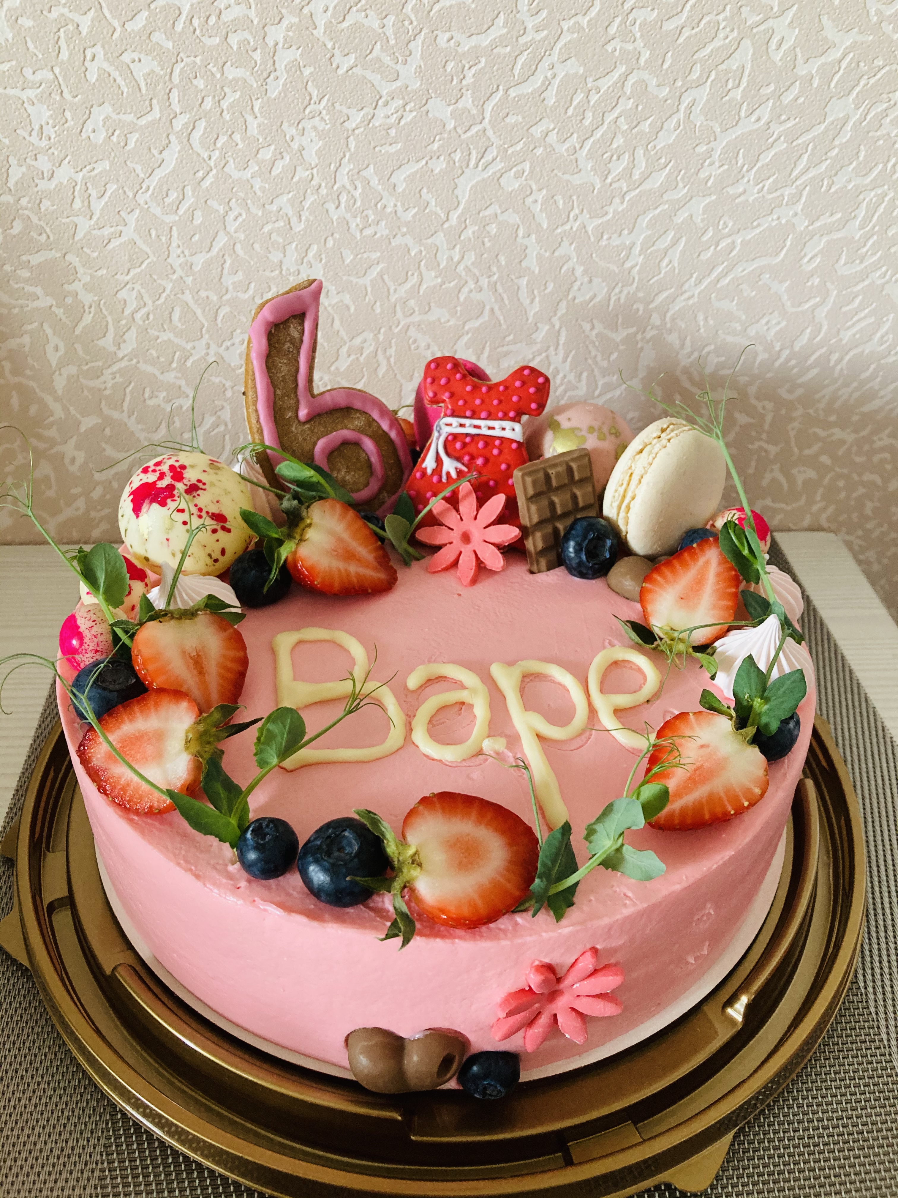- декор (сферы из шоколада, безе, надпись, цветной крем, ягоды): 20 руб.