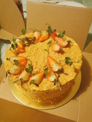Состав: сахар, мёд, сливочное масло, мука, яйца, сода, сок лимона, сметана.