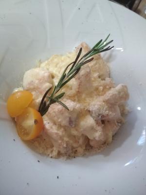 Состав: лосось, виноградный напиток, лук, сливки, чеснок, сыр, черри |