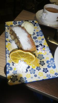 Чай + штрудель с мороженым (220 г) 15 р. 30 р. Состав: слоеное тесто, яблоки, изюм, корица, грецкий орех, мороженое, топпинг, сливки |