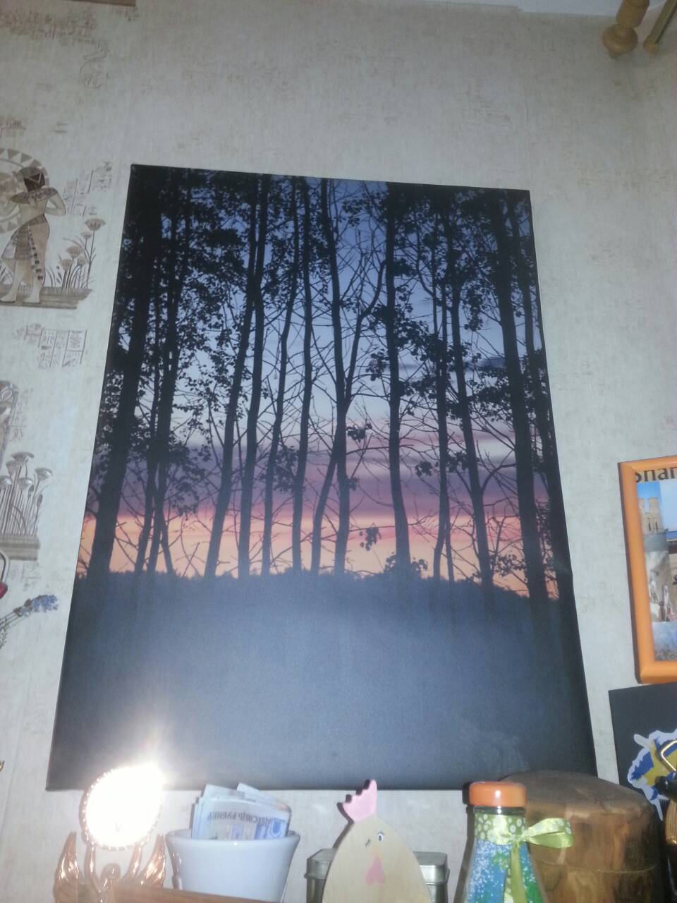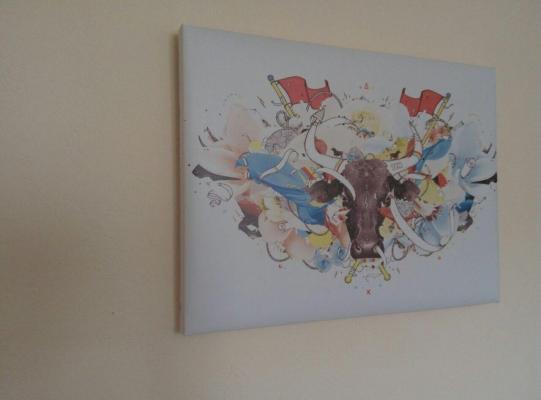 Печать на холсте - это технология, которая позволяет переносить любое изображение на тканевый холст. С одной стороны холст залит специальным материалом, чтобы краска ложилась целиком на полотно, а не просачивалась через него. Таким образом достигается эффект картины.