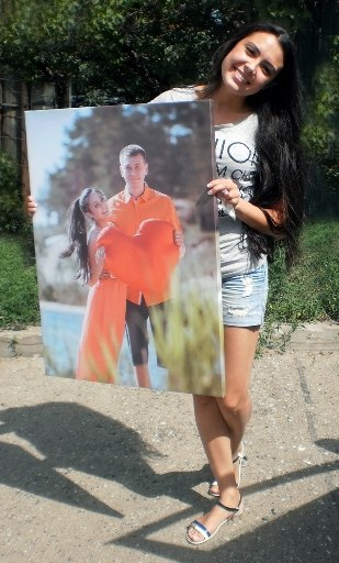 На годовщину одной нашей молодой паре надо было сделать подарок. По срокам более менее успевали. Приняли заказ быстро. Через 2 дня заказ был готов. Договорились о встрече. Быстро и четко. Картина с холстом очень понравилась. И нашим друзьям понравился наш подарок. У них теперь в своей комнате висит эта картина. Спасибо вам за качество