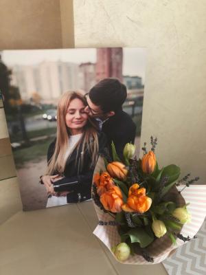 Добрый день!Я хочу сказать огромное спасибо за такую красоту.Заказала свадебное фото на холсте, в подарок, и осталась очень довольна.Приветливая девушка перезвонила и уточнила все нюансы,вежливый и очень приятный курьер,доставил картину.Вы лучшие!!!!