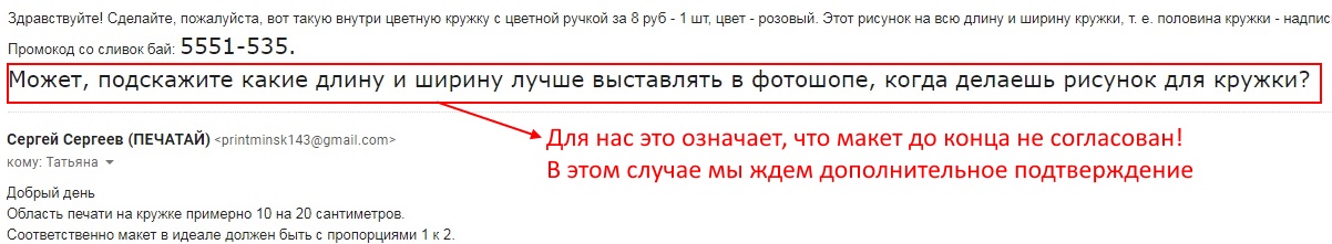 макета для кружки. Менеджер сразу ответил Вам по поводу размера и оптимальных