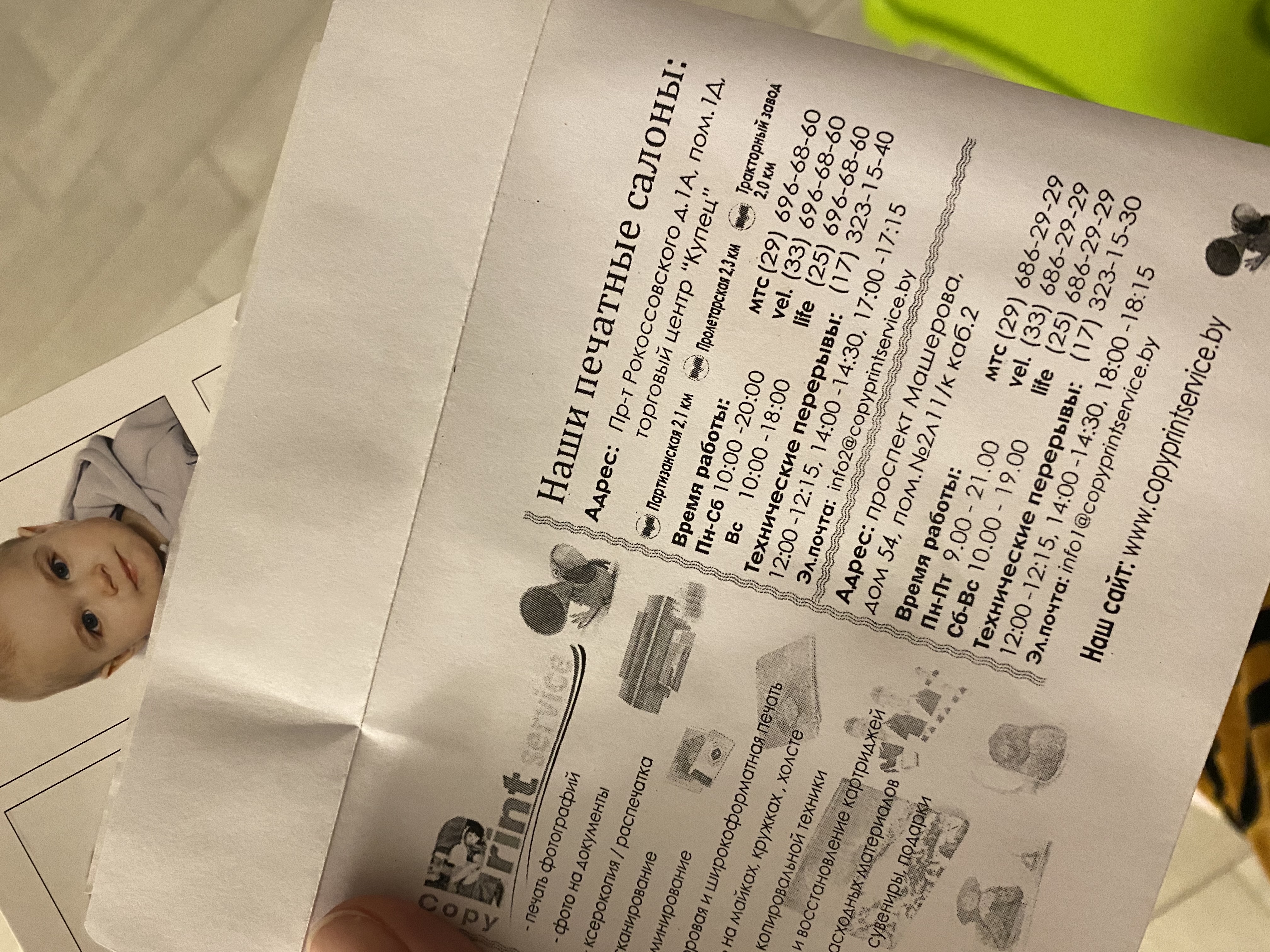 Очень редко пишу отзывы, но тут не удержалась) Сегодня печатала постеры 30*40, получилось очень круто. Я даже не ожидала, что так будет. Классная цветопередача, все четко и качественно. Плюс ко всему очень милая и добрая девушка. Рекомендую 👌