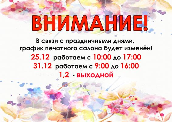 Временные изменения в связи с праздничными днями в графике работы печатного салона.