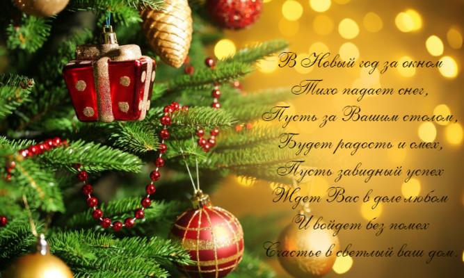 Вот с небес спустилось чудо, рождеством его зовут, и, неведомо откуда, всюду радость — там и тут. Пусть в семье всё будет ясно, будет славен дом теплом, будут в нём достаток, счастье.