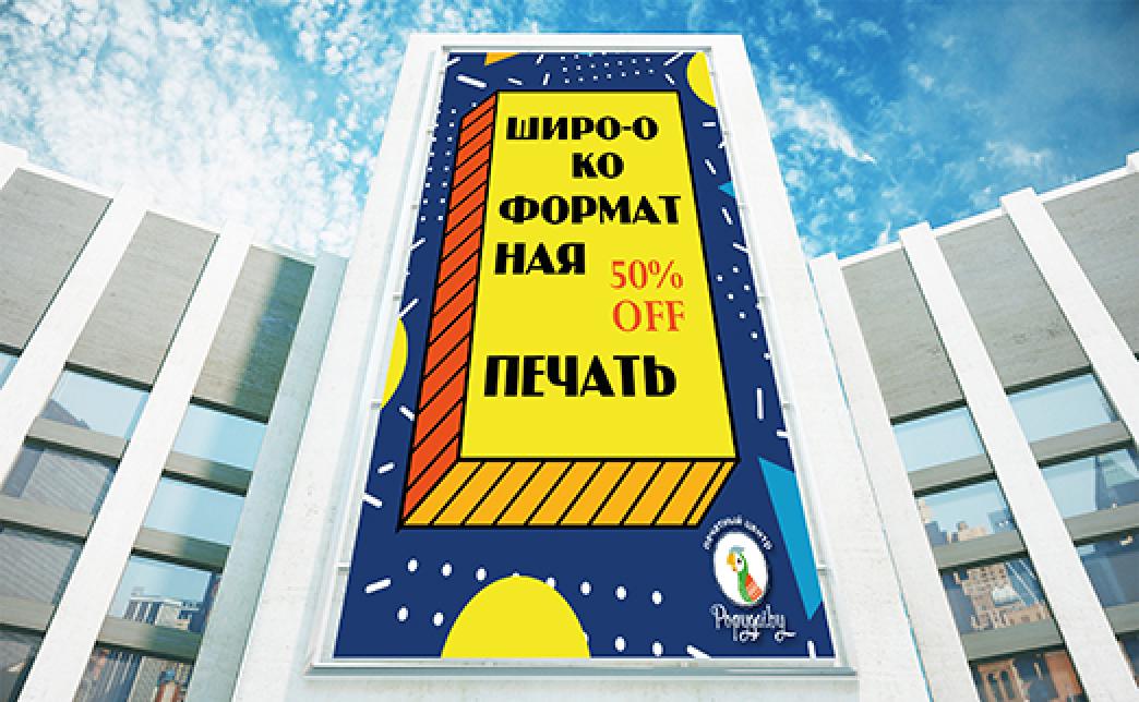 - Промокод дает право на скидку до 50% на широкоформатную печать, стикеры, экосольвентную печать, фотозоны, пресс-волы, баннера, ПВХ