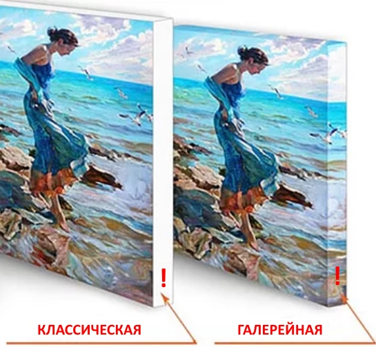 - Образцы картин на холсте Вы можете посмотреть в нашей студии, а также увидеть разницу между классической и галерейной натяжкой. Подробнее про типы натяжки на подрамник можно узнать здесь