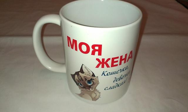 Спасибо Вам большое за качественную печать кружек и маек. Мы в восторге. Будем обращаться к вам всегда :)  Фото жены прилагается)))