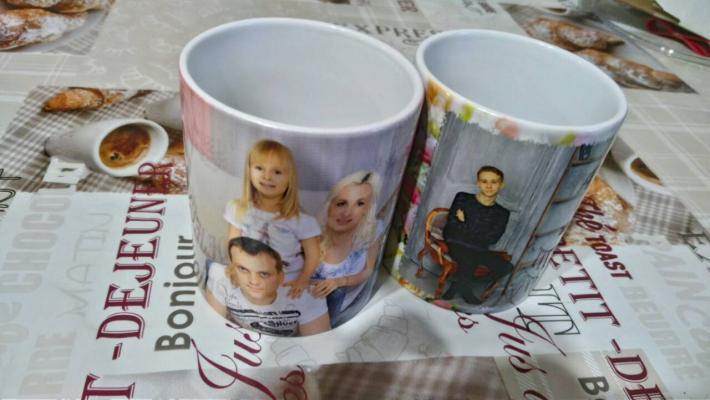 заказывали 2 чашки, одна отличная, другая немного цветопередача плохая, лица розово-кремового цвета, сказали мол оригинал плохой, хотя в ателье из этого же оригинала слелали отличное фото. сделали быстро, на завтра я уже забрала чашки.