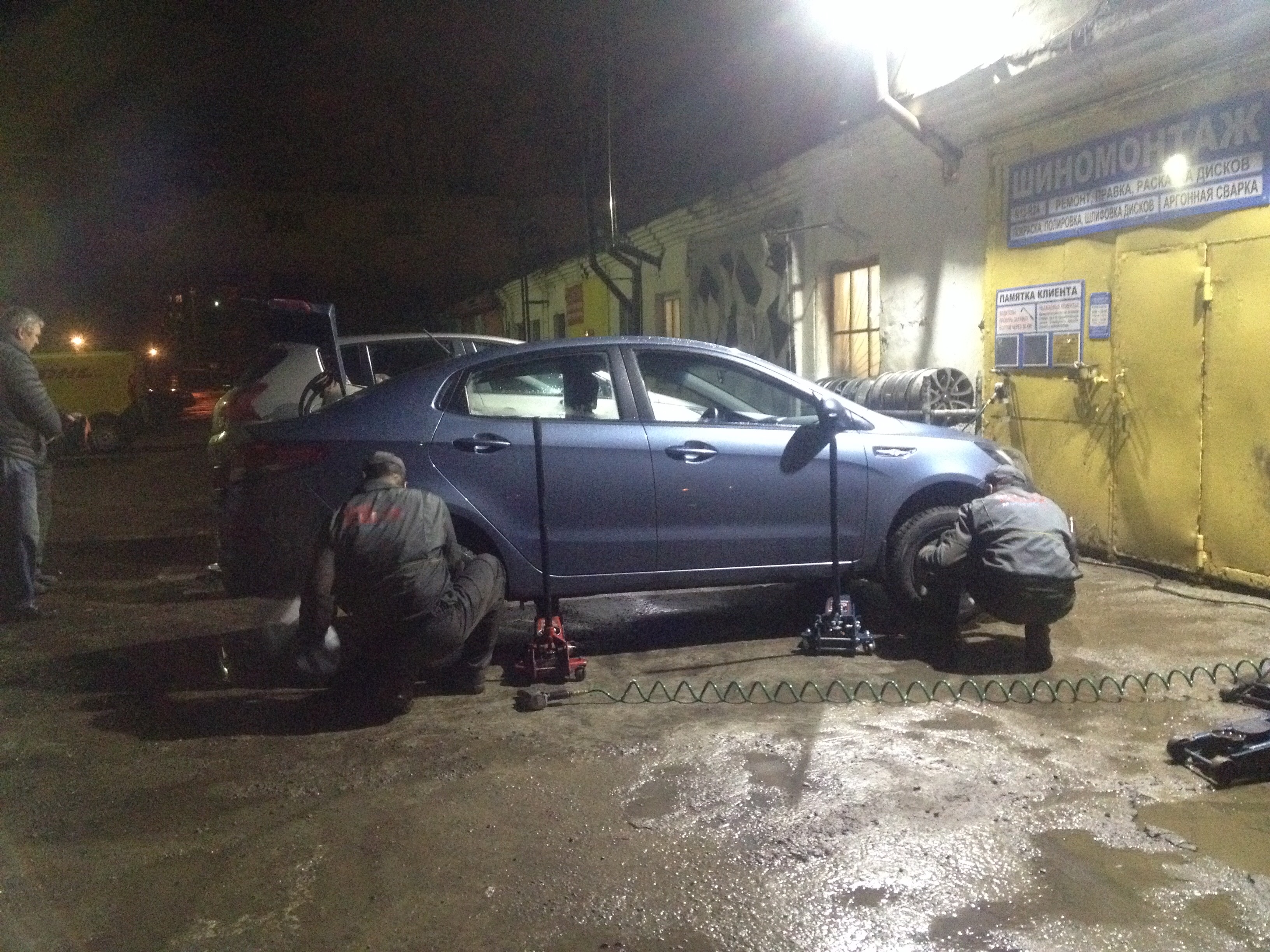 - снятие прикипевшего колеса к ступице, разбухших гаек, дефектных болтов, дефектных гаек и т.п сложности + 5 р/колесо