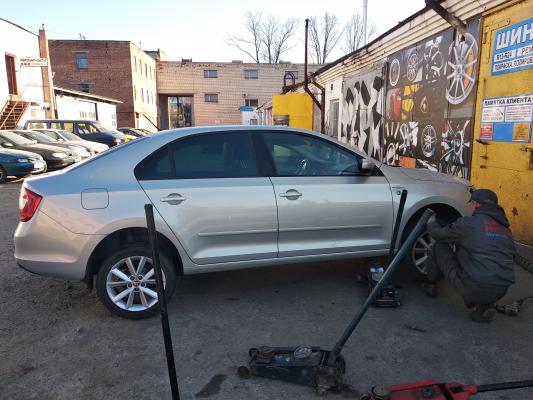 - снятие прикипевшего колеса к ступице, разбухших гаек, дефектных болтов, дефектных гаек и т.п сложности + 5 р/колесо