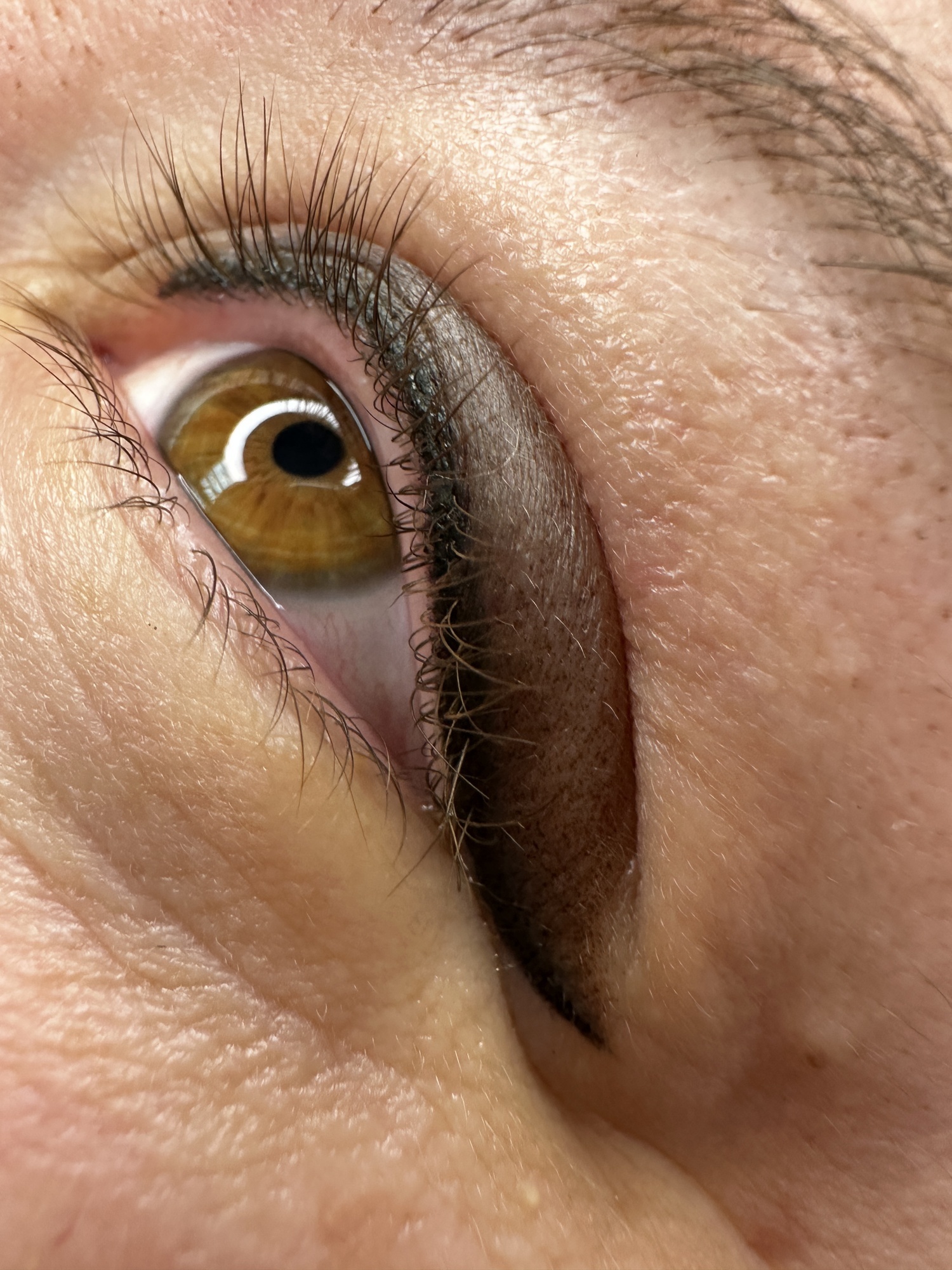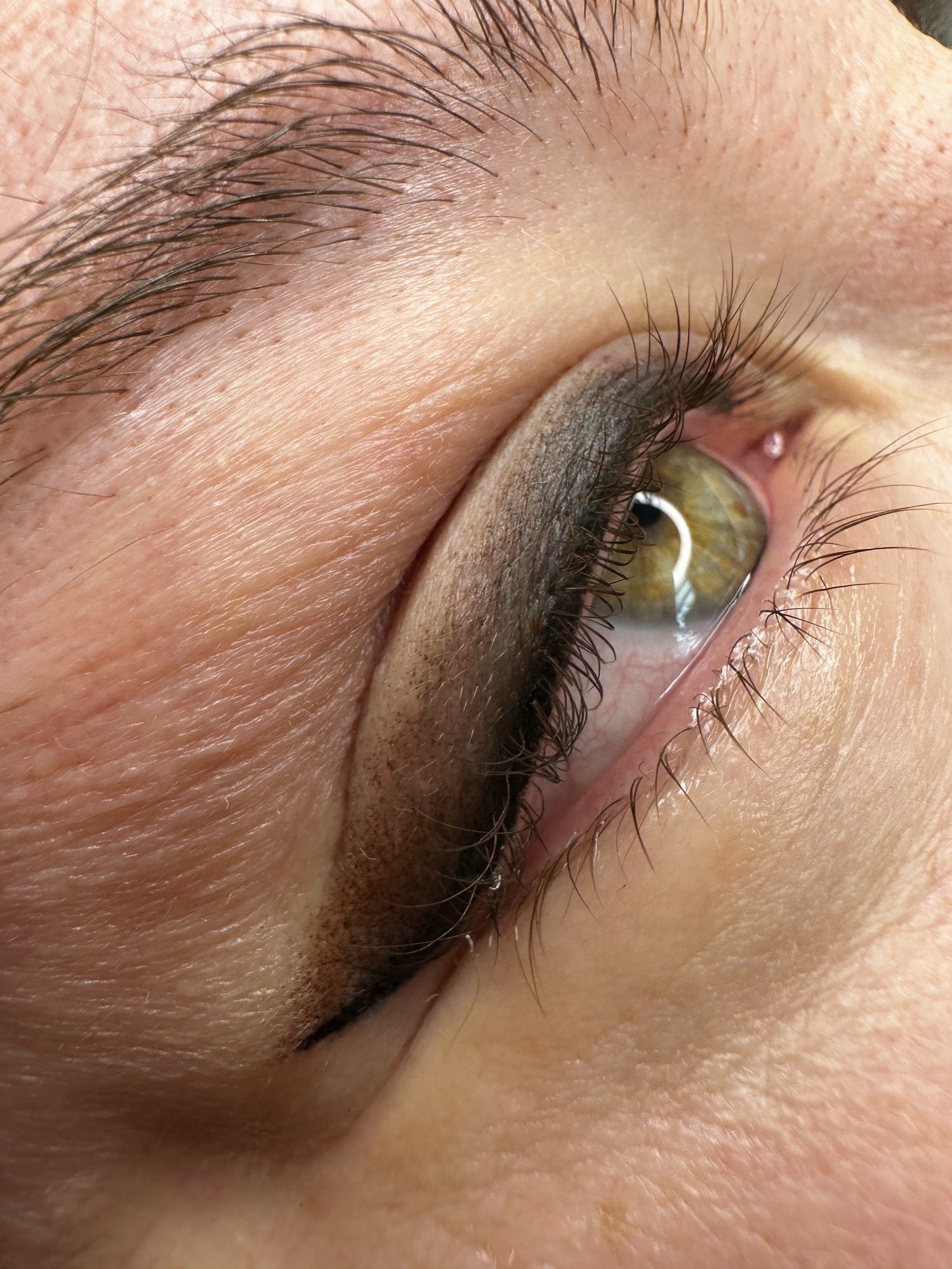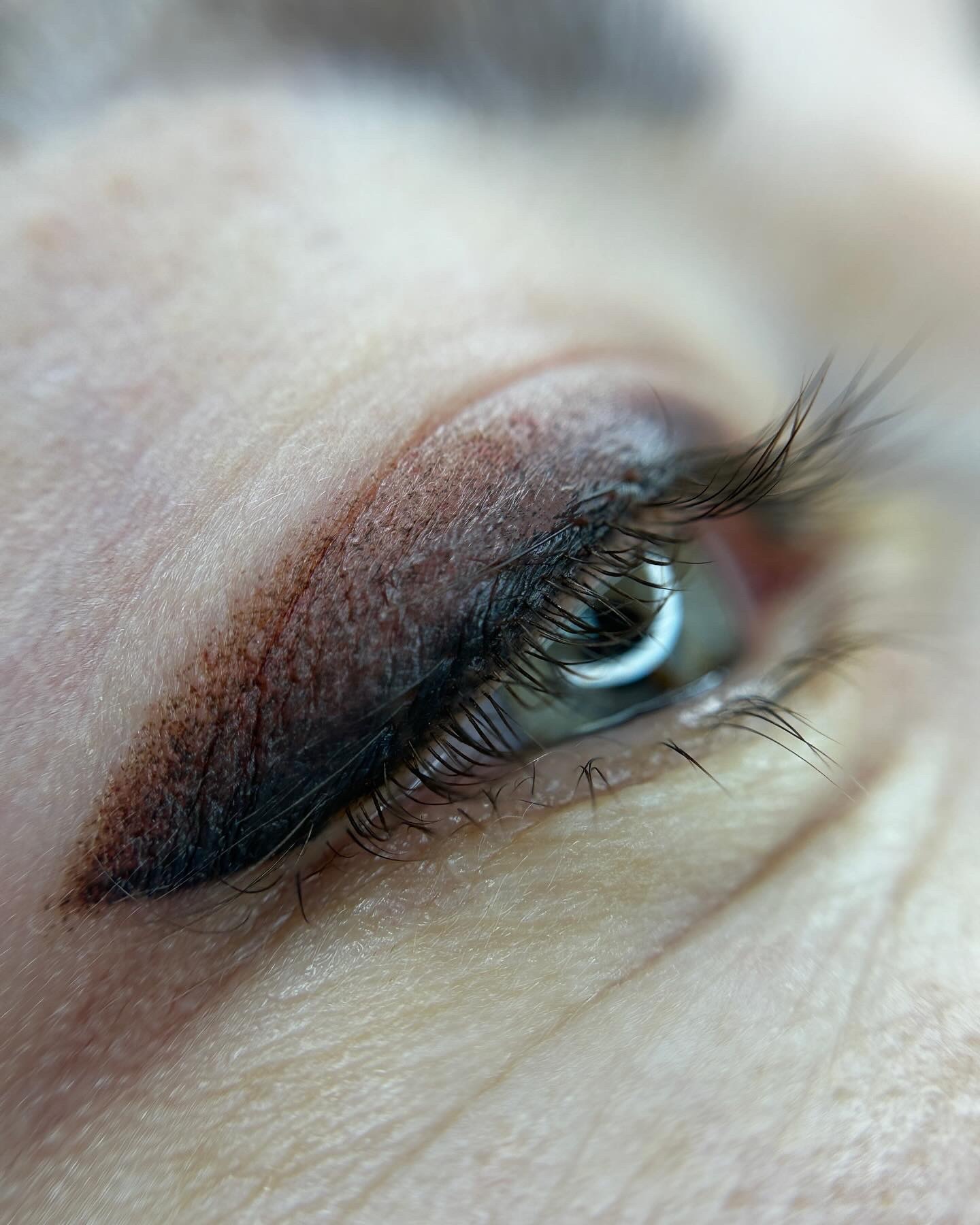 - перед процедурой перманентного макияжа век не нужно никакой специальной подготовки. Но есть один нюанс: если на веках тонкая кожа с обилием ярко выраженных сосудов, процедуру лучше не делать. В противном случае, результат может быть не таким, как ожидает клиент: сосуд, может лопнуть, и краска "поплывет". Если вы ухаживаете за кожей век специальными кремами, которые делают кожу более "крепкой", завершите уход за день до посещения салона, чтобы позволить веку "принять" пигмент.