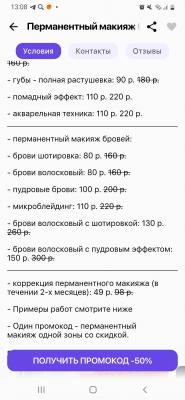 - Один промокод - перманентный макияж одной зоны со скидкой.