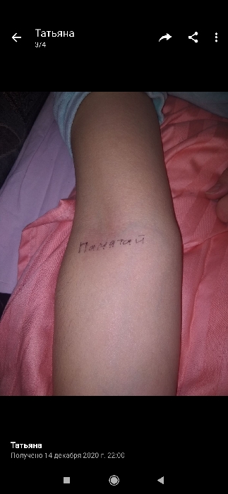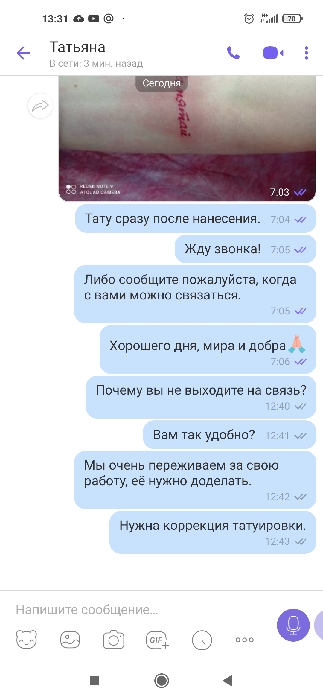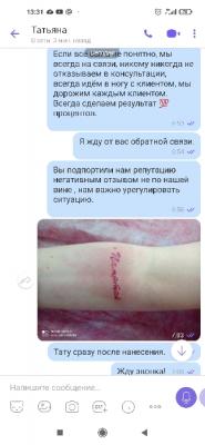 Фото прилагается. P.S стоимость татуировки и размера оговаривалась заранее накануне записи.