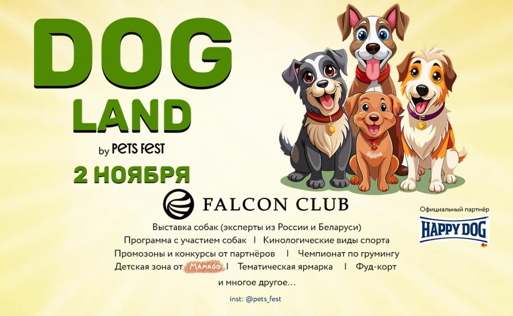 2 ноября посещение выставки собак "DOGLAND" всего за 7,50 р/билет в "Falcon Club"