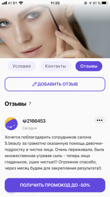 - Один промокод - одна услуга со скидкой.