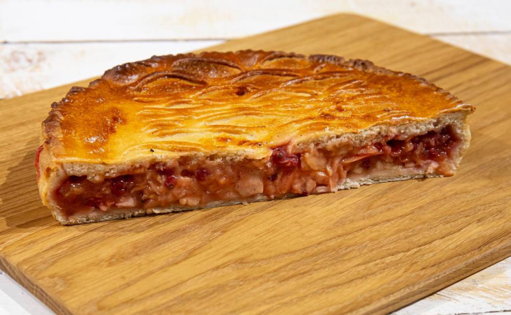 - пирог "С ветчиной, картофелем и соленым огурцом" (1200 г): дрожжевое тесто, ветчина, бекон, картофель, соленый огурец , морковь, лук, черный перец, соль