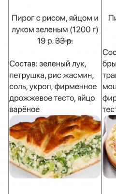 - пироги: от 15 р. от 33 р.