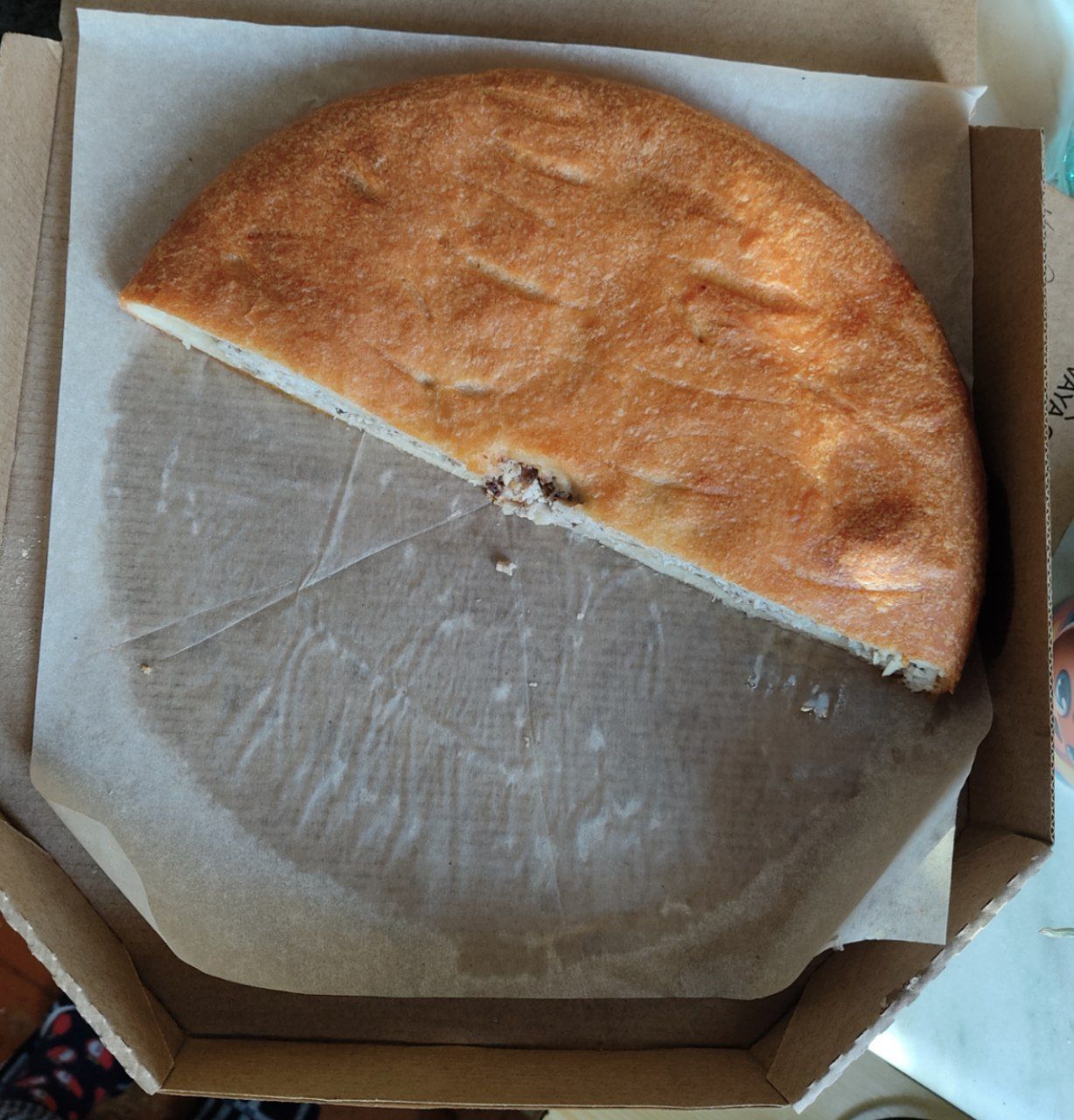 - закрытый пирог с творогом, сыром и чесноком (900 г): дрожжевое тесто, сулугуни, творог, яйца, чеснок, сливочное масло, соль, черный молотый перец