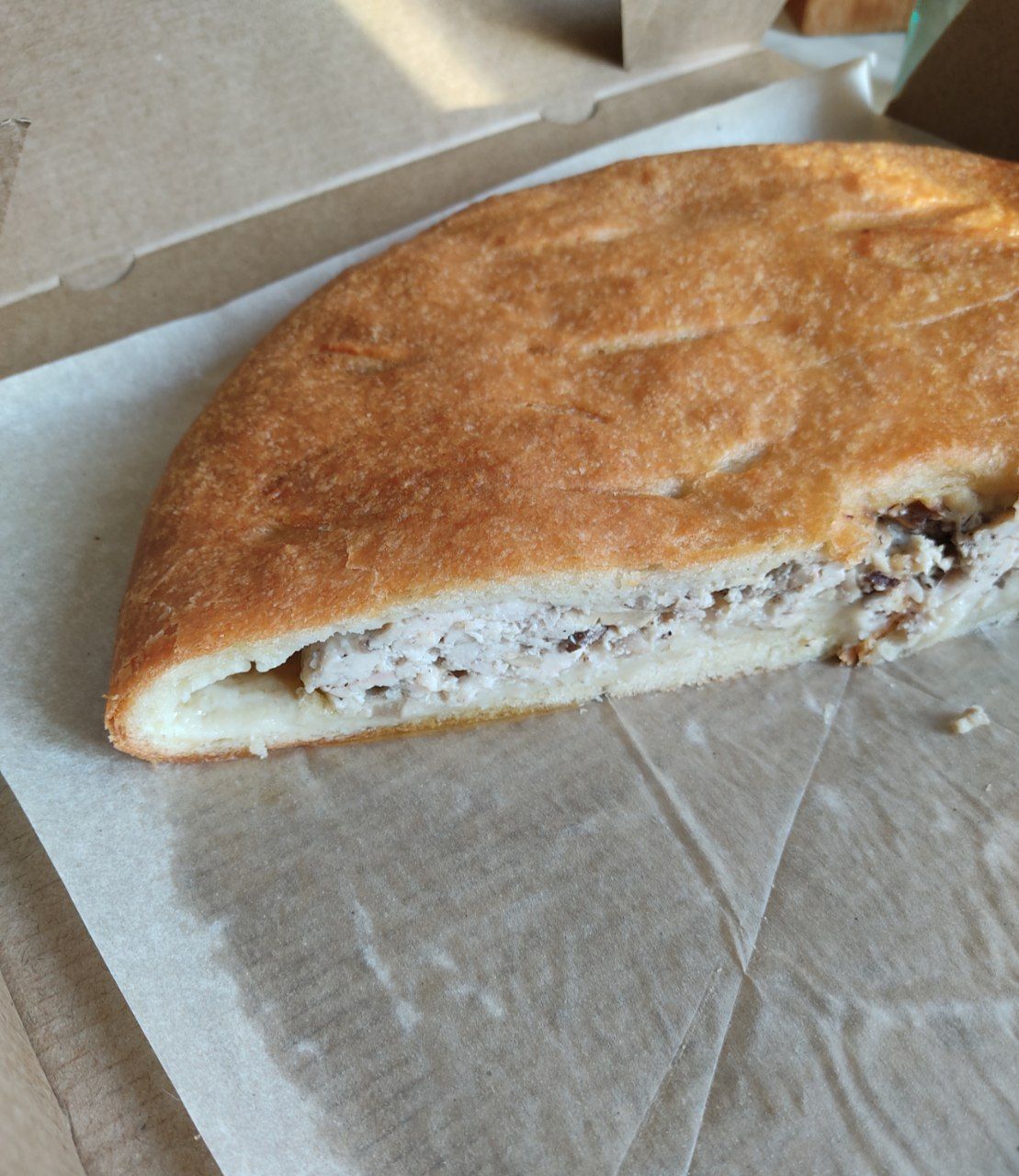 - закрытый пирог с курицей и грибами (900 г): дрожжевое тесто, филе курицы, соль, черный молотый перец, шампиньоны, сливочное масло