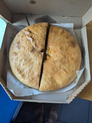 - закрытый пирог с сыром и зеленью (900 г): дрожжевое тесто, сулугуни, зеленый лук, укроп, соль, черный перец