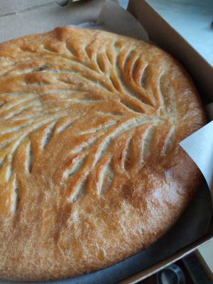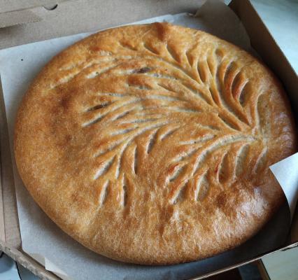- закрытый пирог с картофелем (900 г): дрожжевое тесто, вареный картофель, черный молотый перец, укроп, зеленый лук, соль, сливочное масло