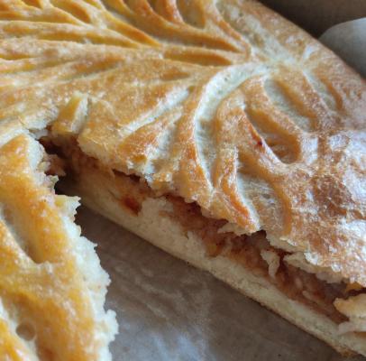 - закрытый пирог с яблоками и корицей (900 г): дрожжевое тесто, яблоки, корица, сахарная пудра