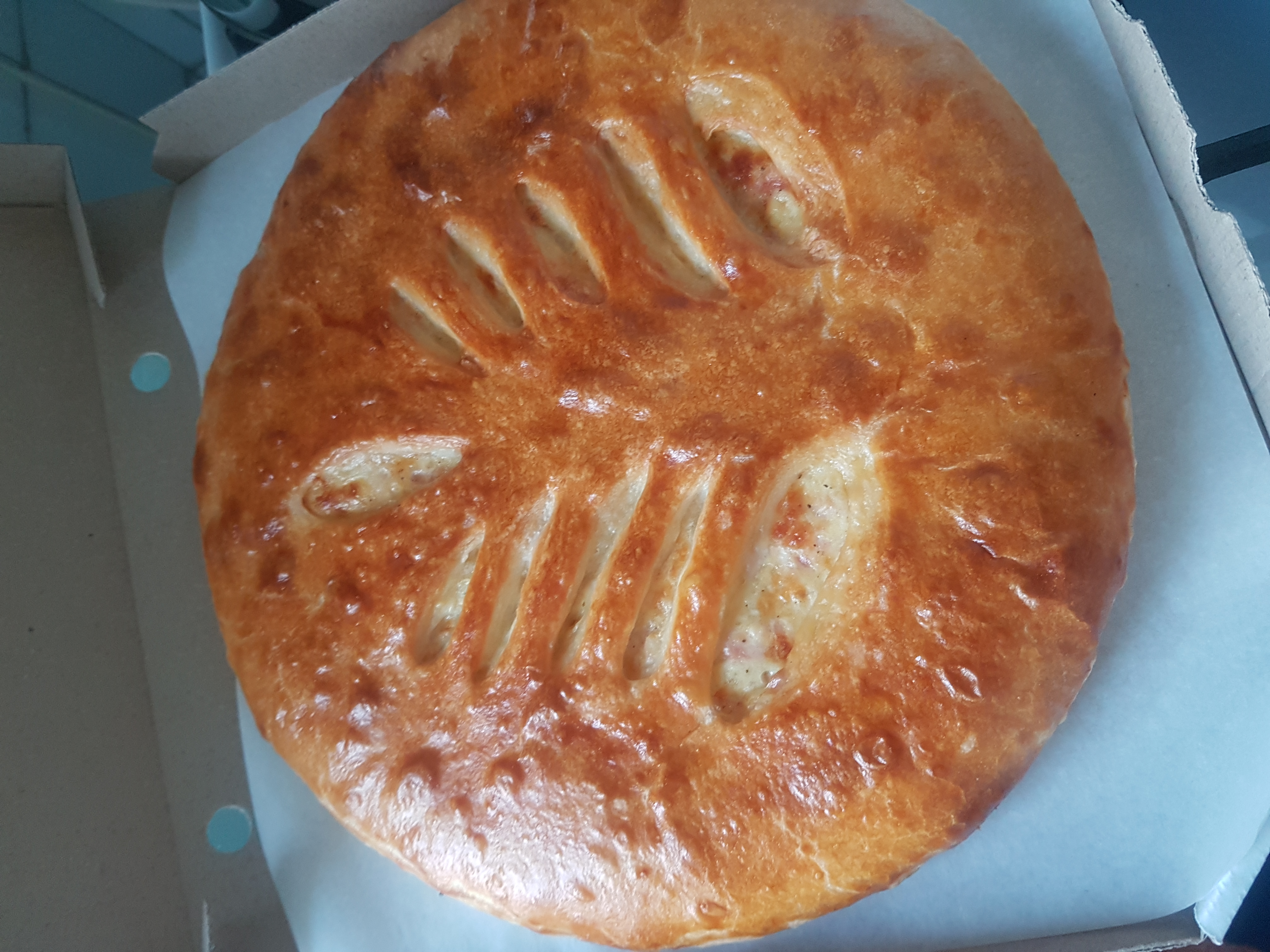 - закрытый пирог с сыром и ветчиной (900 г): дрожжевое тесто, сулугуни, ветчина, сливочное масло