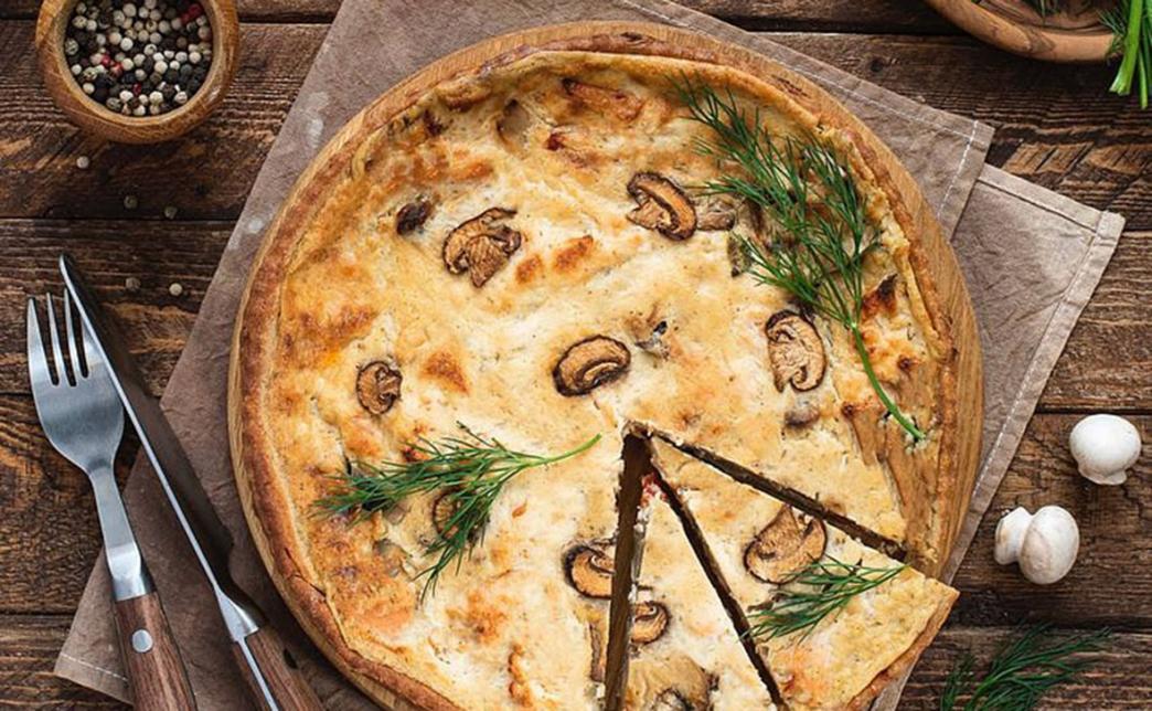 Открытый пирог с ассорти из грибов и копченым цыпленком (1100 г)