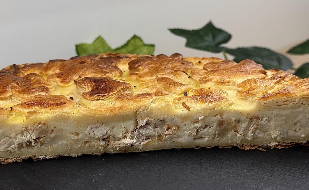 - Лоранский пирог "С птицей и цветной капустой" (1200 г): фирменное слоеное тесто, филе курицы отварное, цветная капуста, яйцо, сливки, творожный сыр, чеснок, соль, сахар, перец