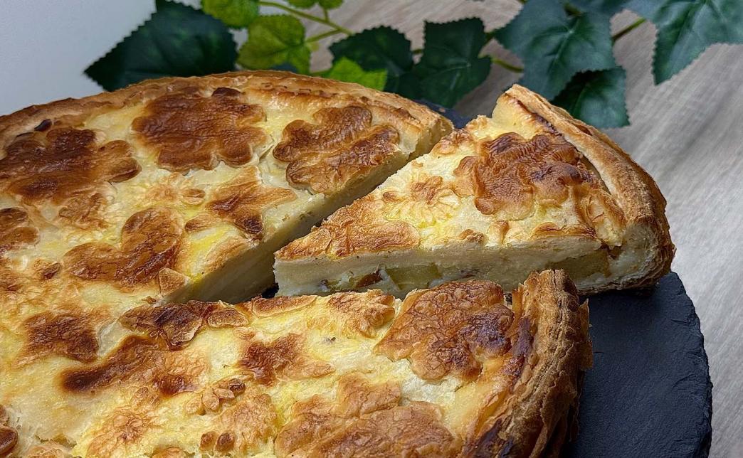 - Лоранский пирог "С яблоком и корицей" (1200 г): фирменное слоеное тесто, яблоко, корица, яйцо, сливки, творожный сыр, чеснок, соль, сахар