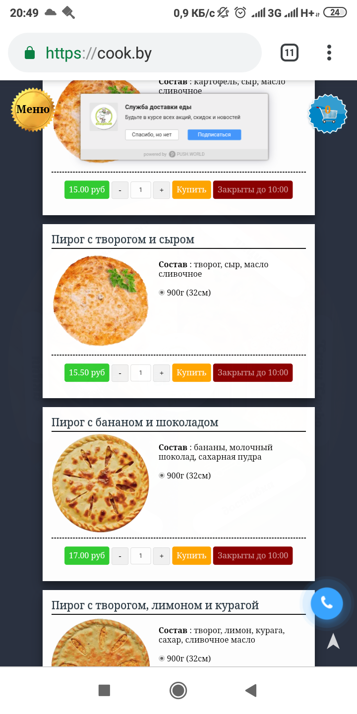 - Промокод дает право на скидку до 50% на пироги от службы доставки "Cook.by"