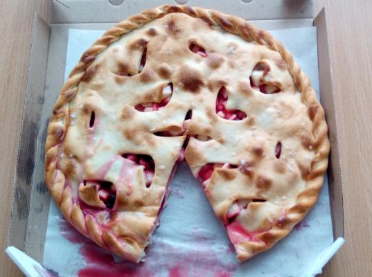 Состав: яблоки, сахар, корица, ваниль, подсолнечное масло, вишня, мука высшего сорта