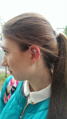 Особенность прокола: пирсинг ушей возможно сделать по всей их площади.