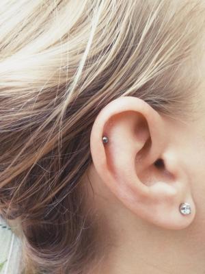 Особенность прокола: расположить украшение для пирсинга можно в любом направлении по вертикали, также можно использовать такие украшения как:гвоздики, серёжки.