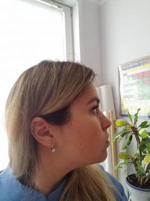 Прокалывала вертикальный индастриал. Прокол прошел безболезненно и быстро) Сразу видно: рука мастера.