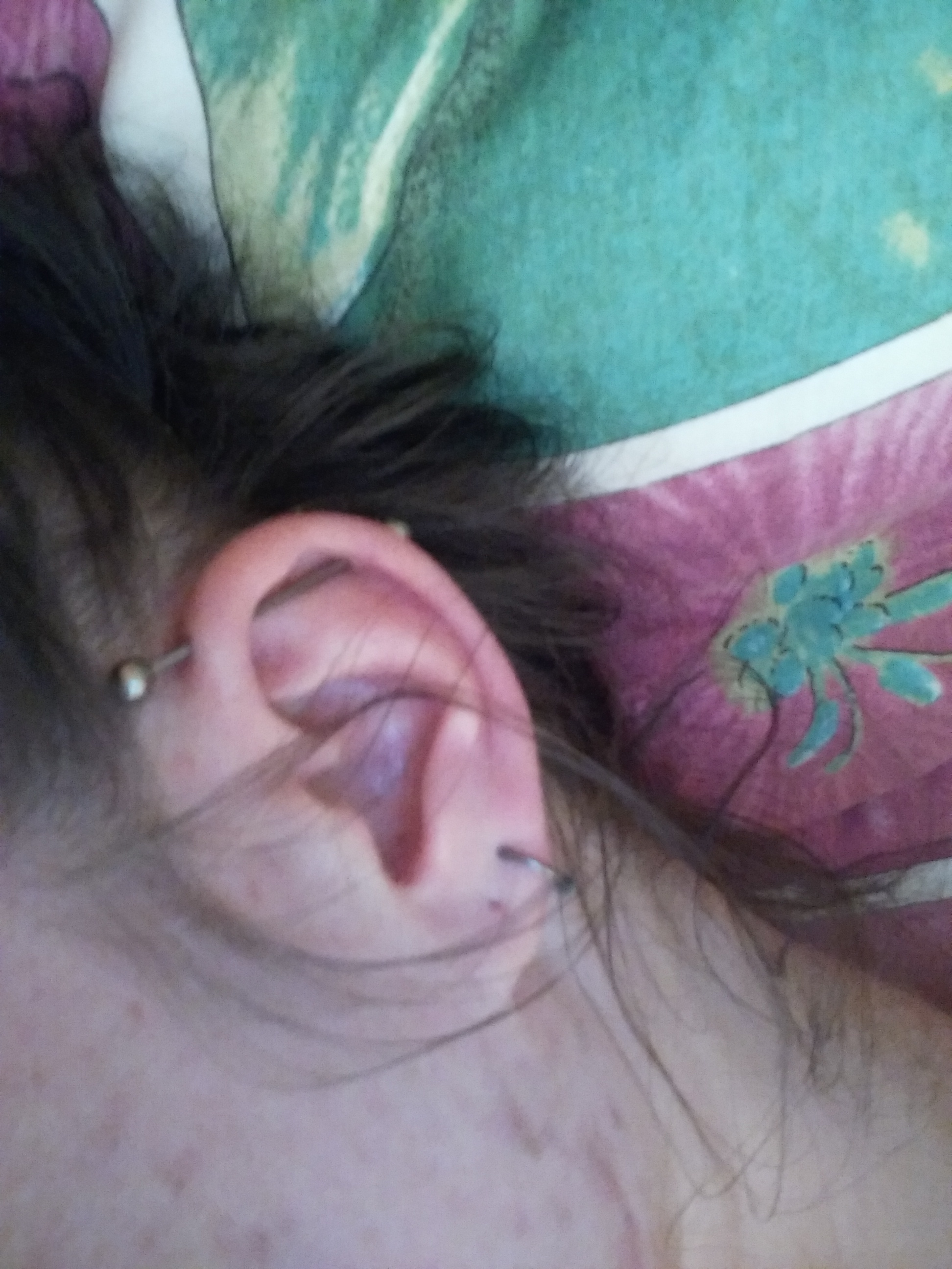 Прокалывала индастриал в мае. Один из проколов зажил только сейчас.